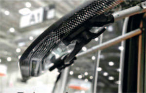 Fenster mit Rahmen: Der Rahmen ist fest mit dem Fenster verbunden und liegt auf der Fahrzeugwand auf.