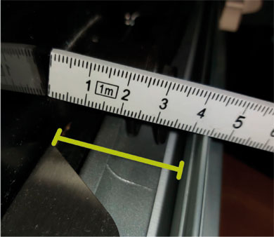 Um die ermittelten Millimeter besser abzulesen, stecken Sie ein Stück Papier oder eine Plastikkarte in den Rolloschacht.
